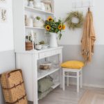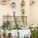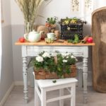 Im Sommer 2016 hatte ich die olle Holzwand weiß verkleidet und eine schöne Pflanzecke eingerichtet. Die sehr schnell zur Dekoecke wurde. Der Pflanztisch steht schon längst woanders. In dem Jahr überwogen die Rosatöne. Dabei fällt mir auf, es sieht aus als wäre ich in den „geraden Jahren“ eher rosaverliebt und in den „ungeraden Jahren“ gelbverliebt? Ist das wirklich so? Nein, dass scheint nur so, auch in 2017 gab es Rosaecken.